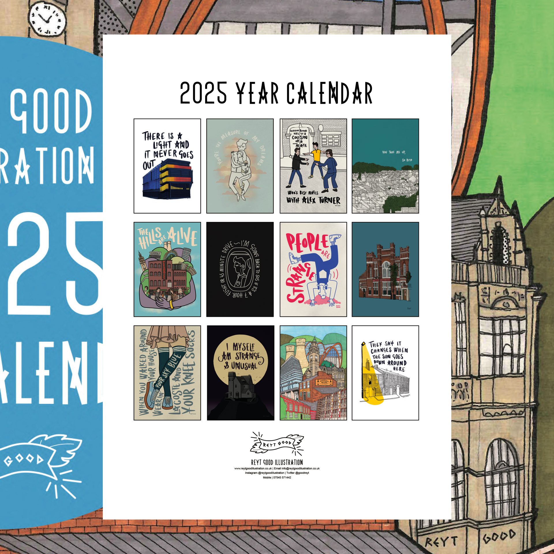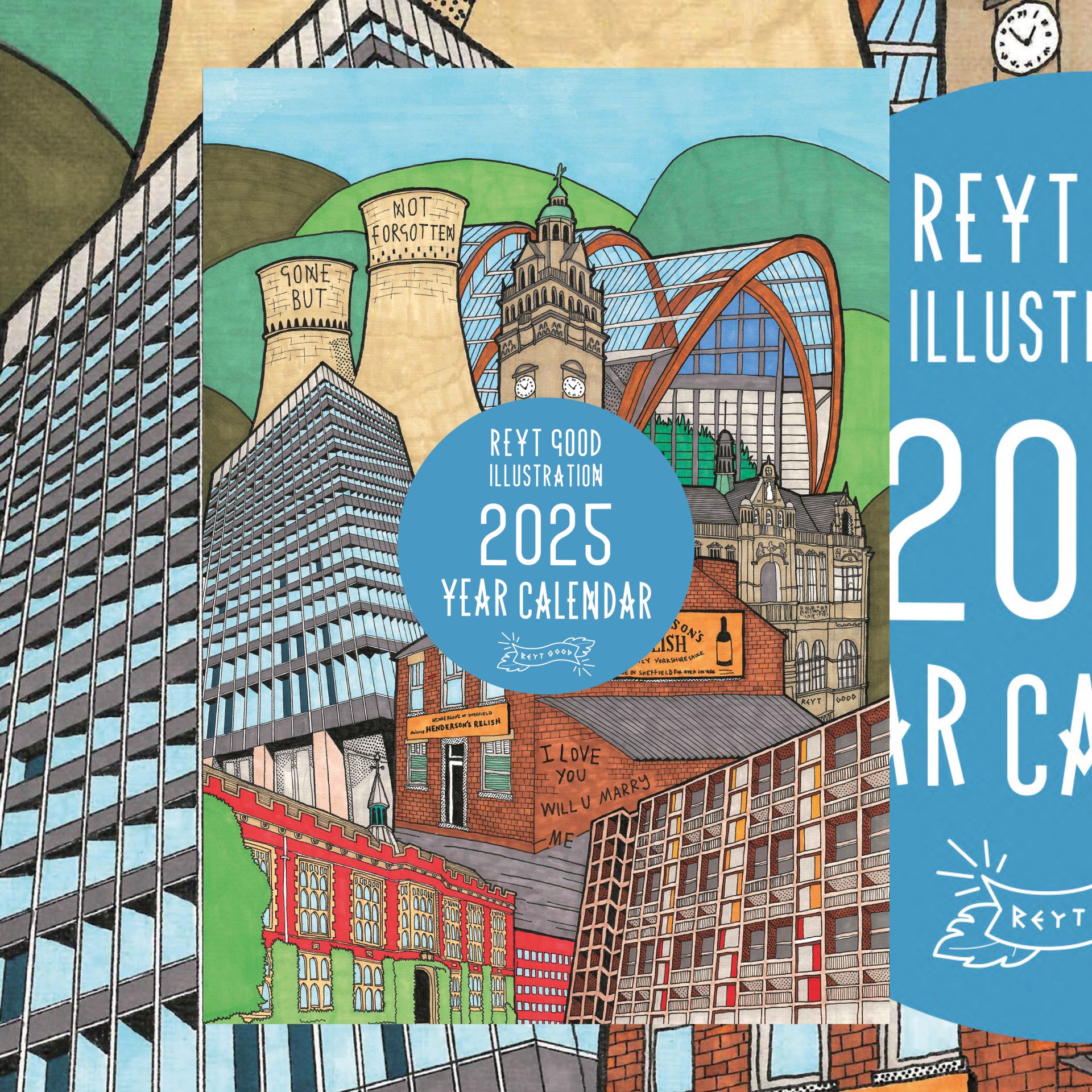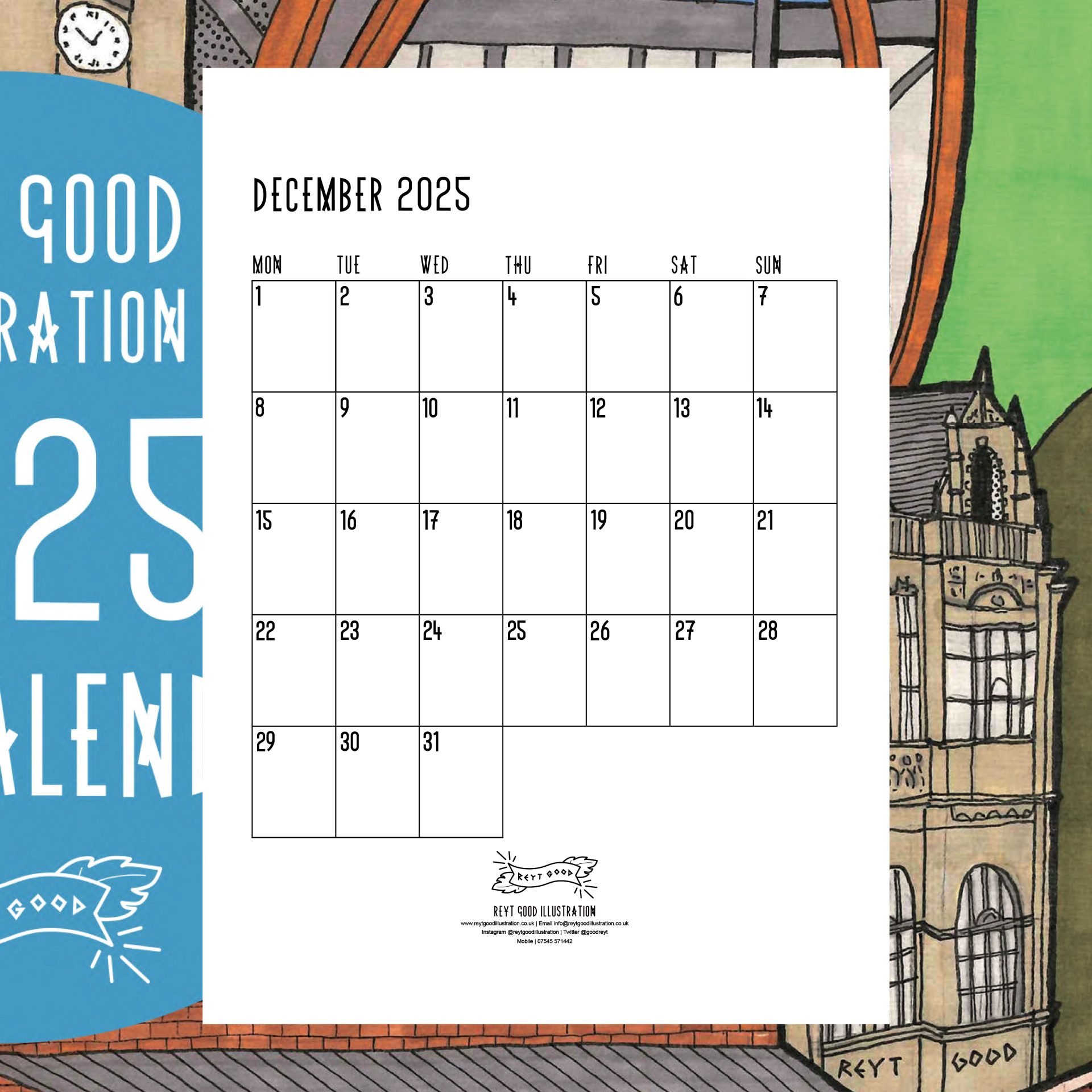 The Calendar includes full A4 pages of my post popular illustrations of 2024. The date pages feature a box for every day of the month to mark in a note. Spiral bound with hole for hanging. This year I’ve included a couple of illustrations that haven’t been releases as prints.