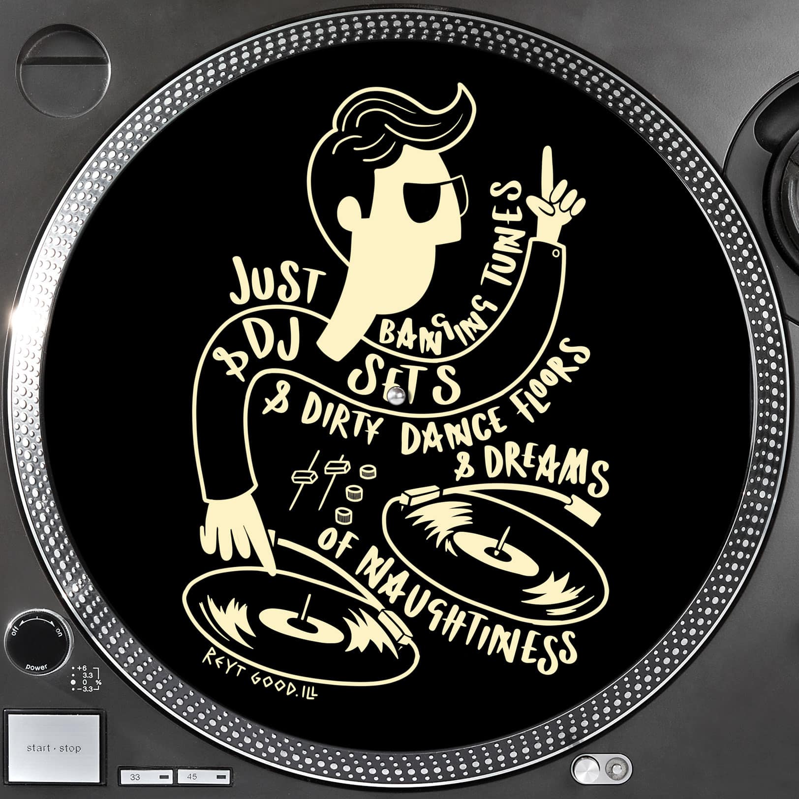 This record mat featuring the Banging tunes artwork, off white on black is the perfect accompany to your record collection. Listen to your banging tunes in style.
