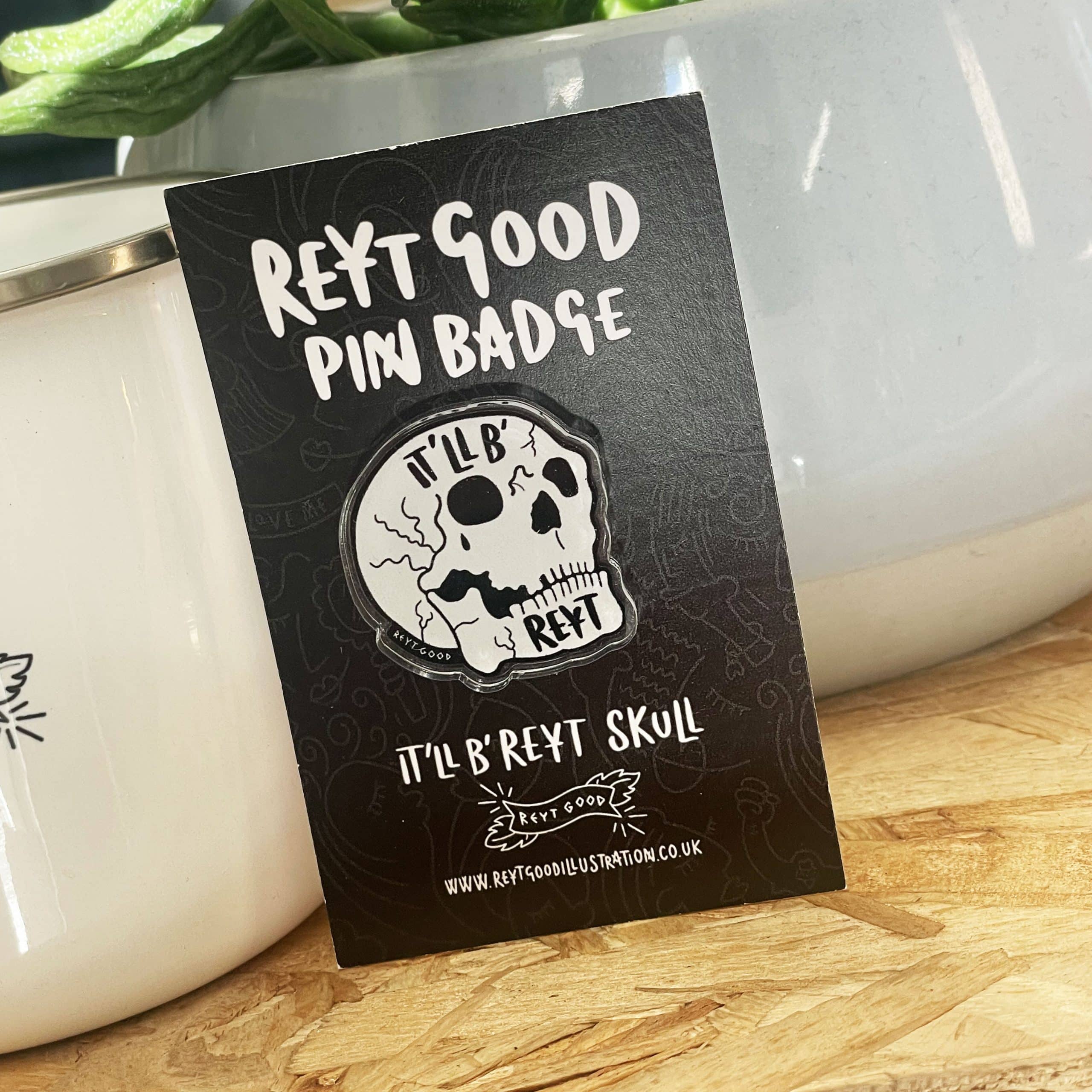 “It’ll B’ Reyt” Skull acrylic pin badge