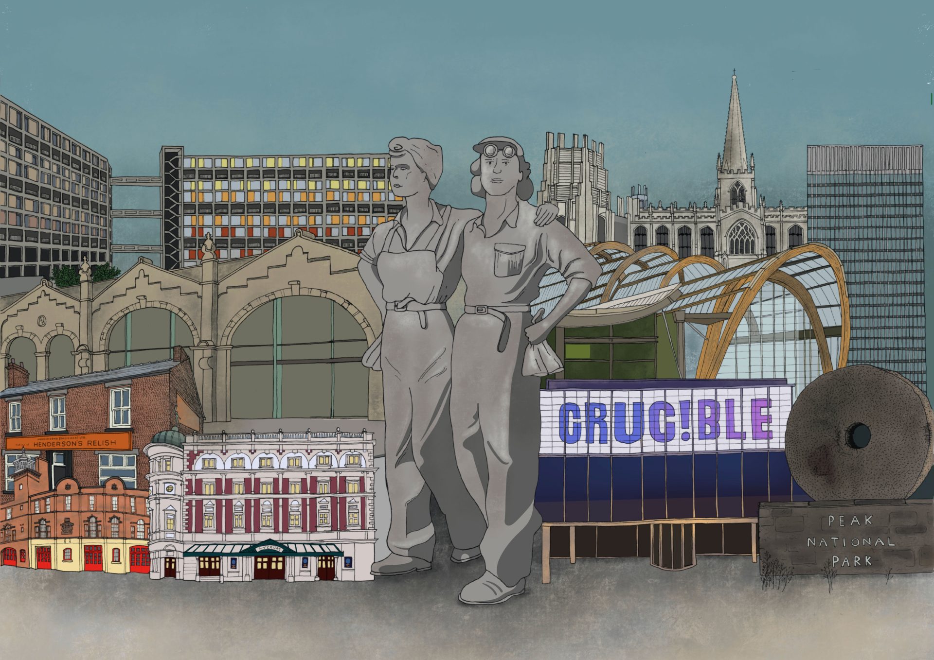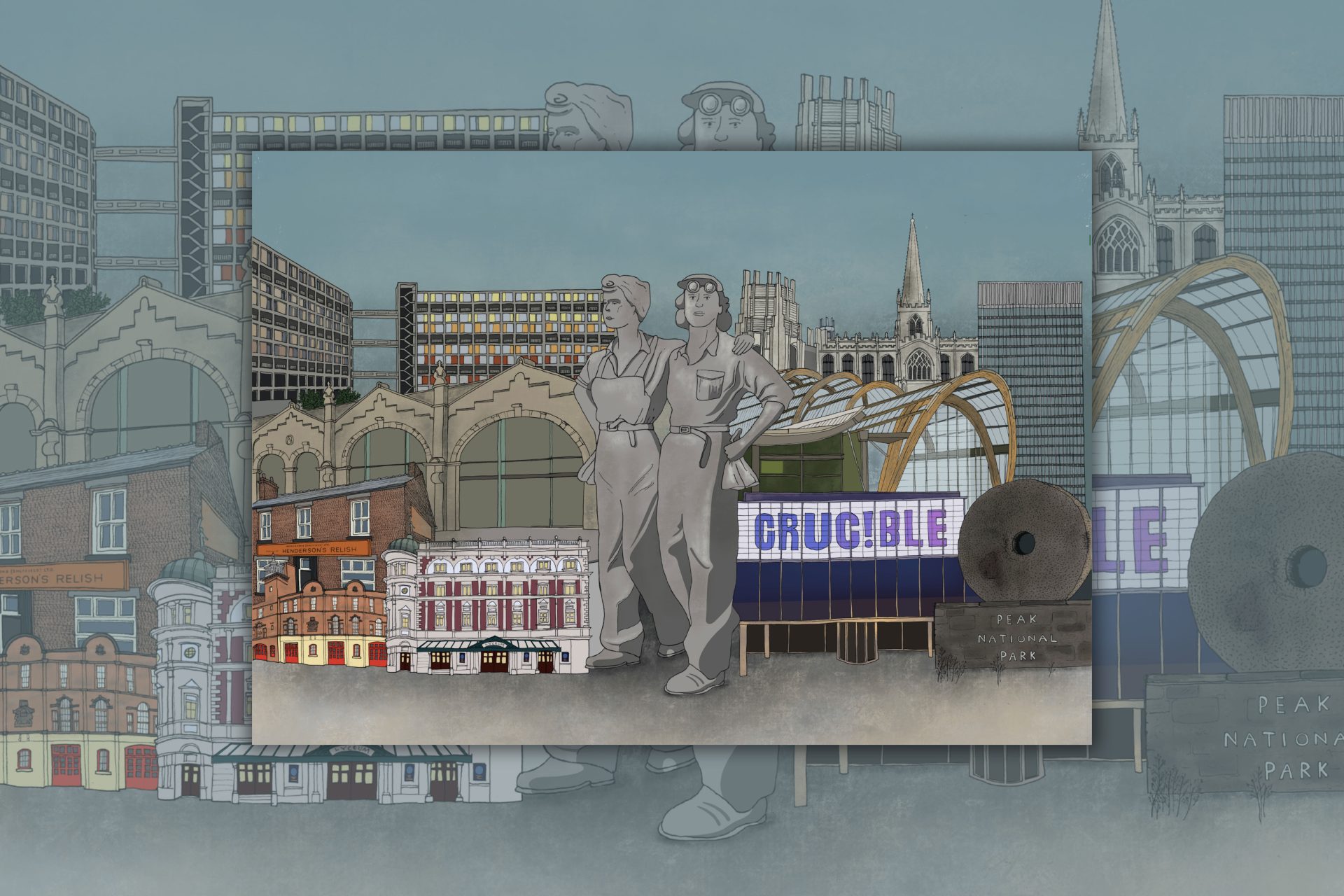 For years I’ve been asked to create a landscape version of my Sheffield Cityscape – and now it’s finally here. The original pen drawing was commissioned by local Sheffield company KOSTAL, who kindly gave me permission to share it as a print. After carefully adding colour, this new edition is ready to brighten up your walls and celebrate the city in style.