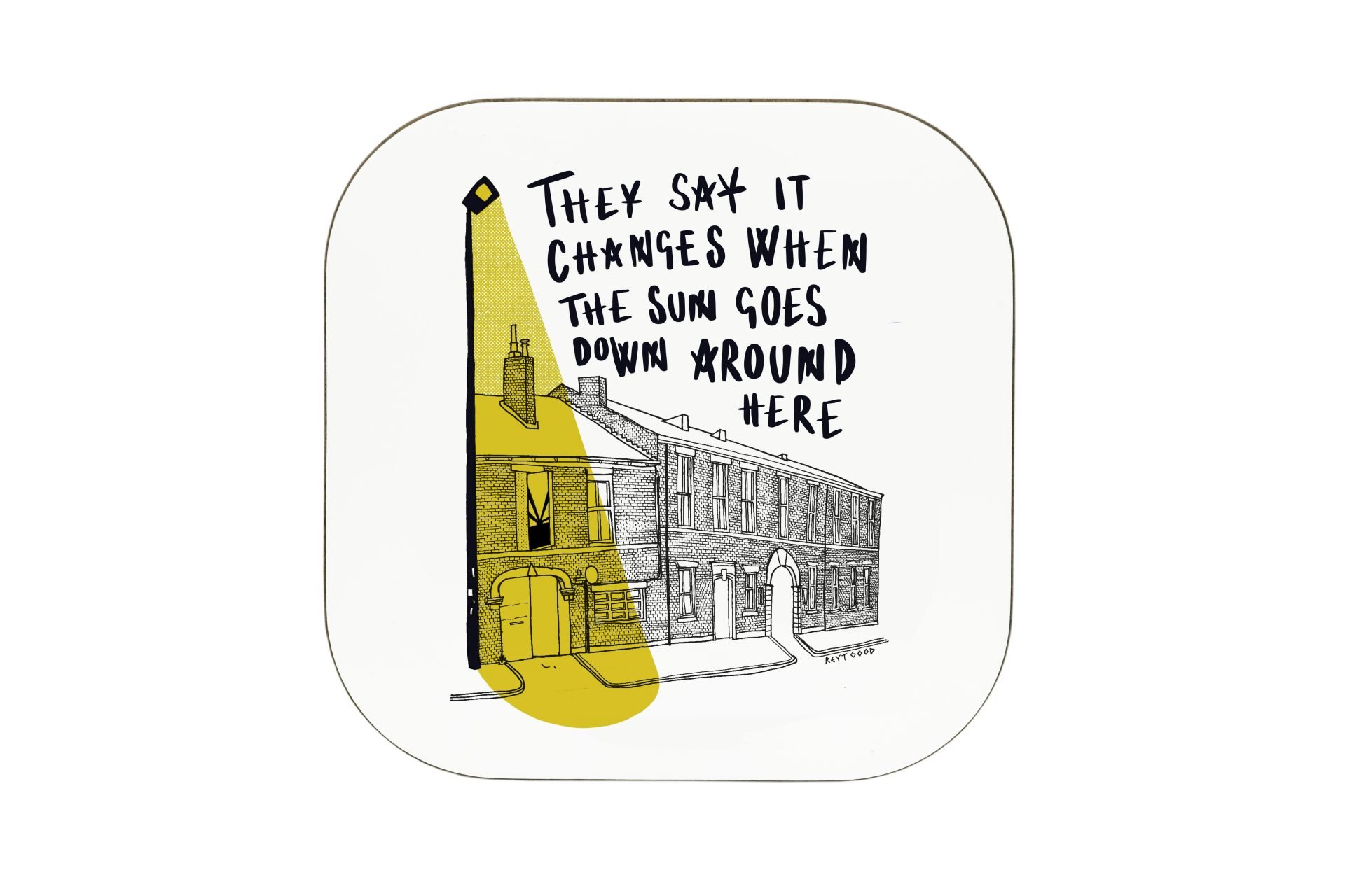 Yellow Arch, Sun Goes Down Coaster – High Gloss Hardboard Coaster 102 x 102 mm